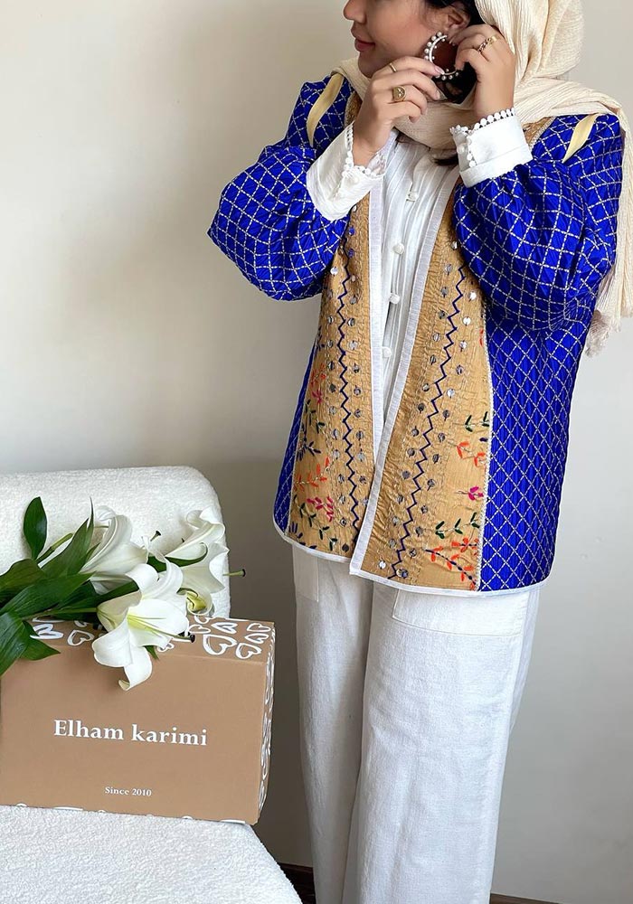 ترکیب پارچه و مغزی, کت آینه کاری هندی |